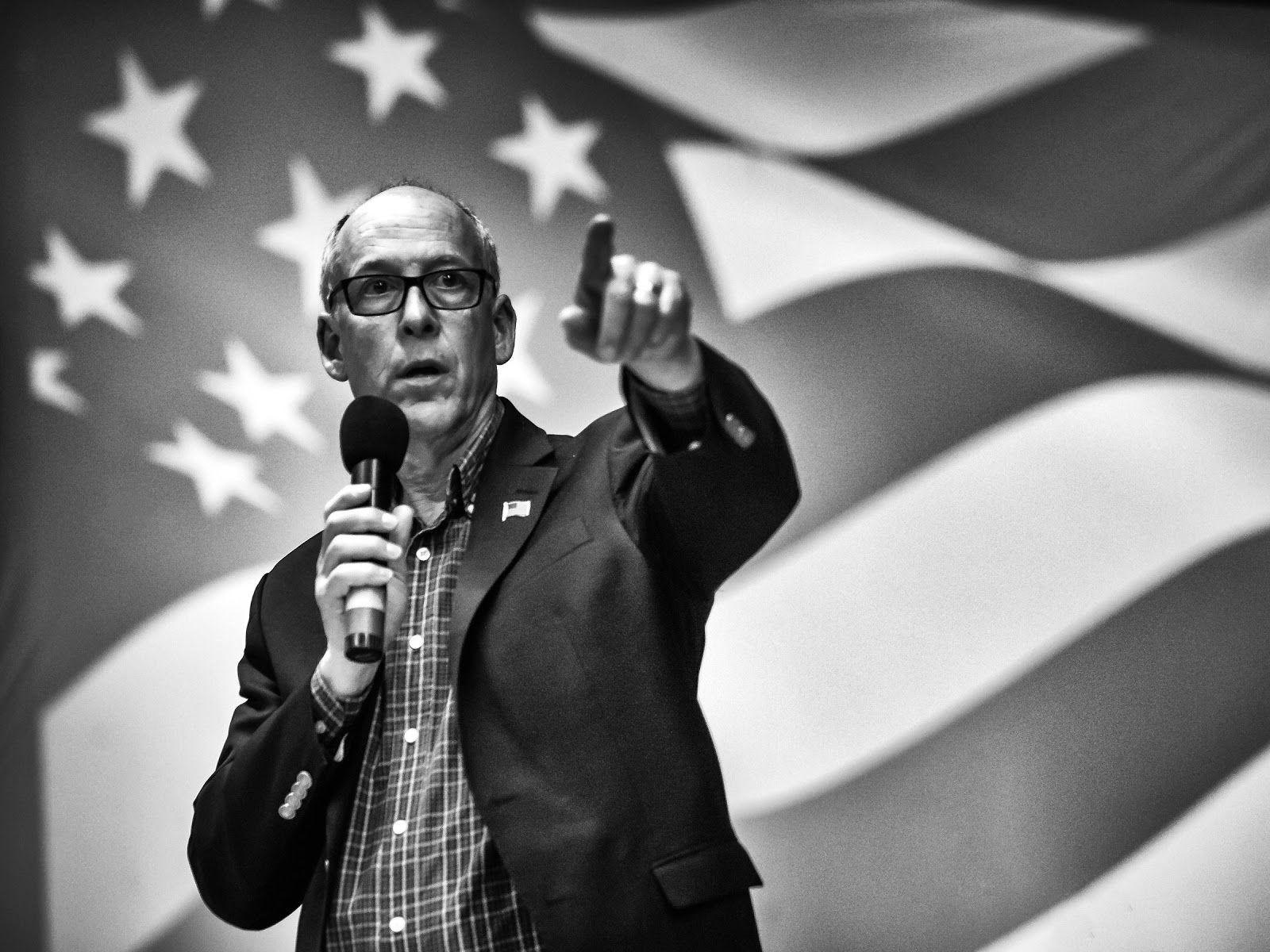 Oregon State representative Greg Walden speaks to thousands at a town hall meeting at Mountain View High School in Bend, Oregon on April 13, 2017. Mike Albright/AP