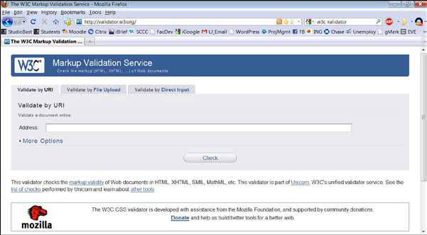 • Open your web browser and go to http://validator.w3.org/.
