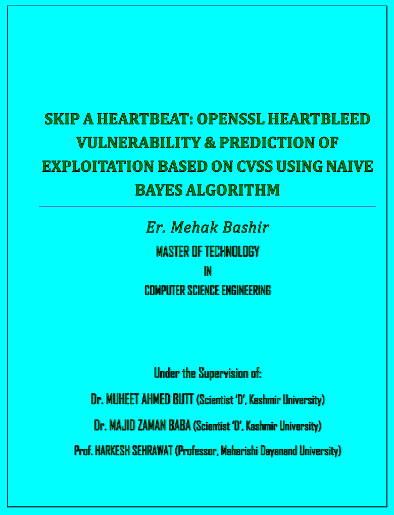 Skip a heartbeat: OpenSSL Heartbleed Vulnerability & Prediction of Exploitation by Mehak Bashir - HTML preview