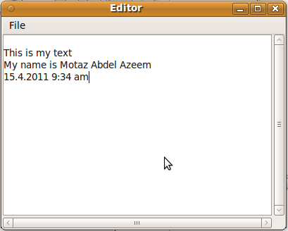After running this text editor application, we can write any text and then save it to disk. We also can open existing text files, like . pas files: