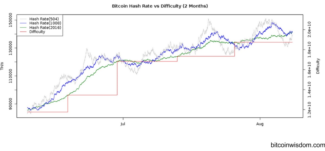 Figure 5.3: Mining difficulty over time (mid-2014). Note that the y-axis begins at 80,000 TH/s.