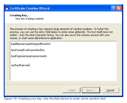 Kleopatra offers a white space where you can type whatever you want on it to stimulate this process. It does not matter what you type because it will not be considered on the key creation and will not be part of it.