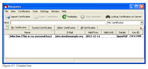 Now you will notice that your recently created key appears in Kleopatra.