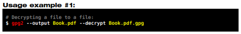In this example the file is output to another file. It is the preferred method to decrypt files. In our example the resulting file is called Book.pdf.