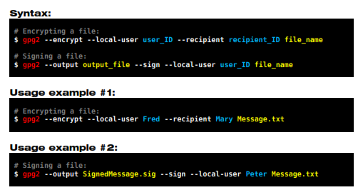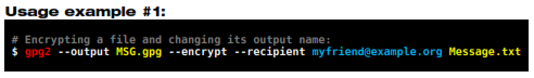 In this example the file Message.txt after being encrypted will be named MSG.gpg.