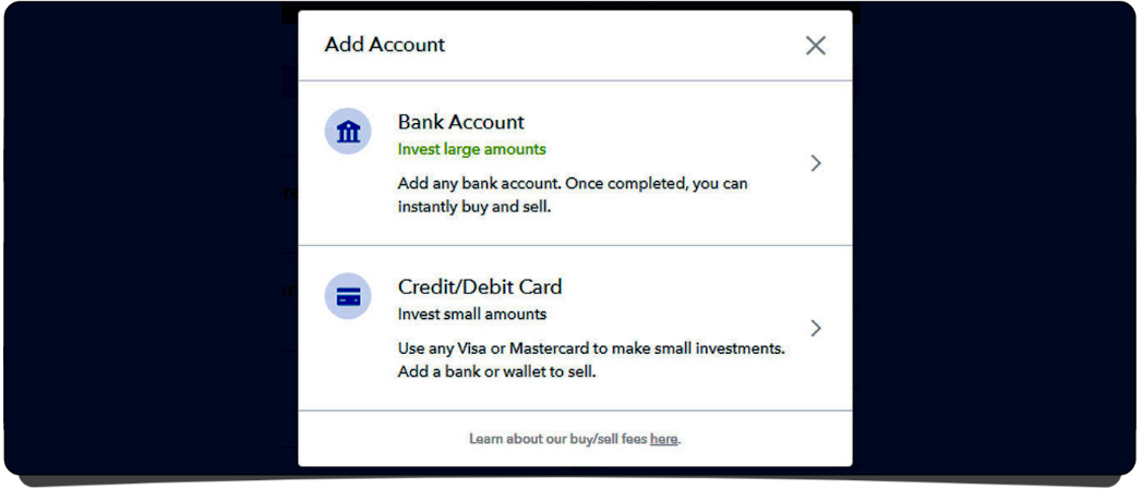The fastest option for buying, but with lower buy limits and higher fees than using a bank account.