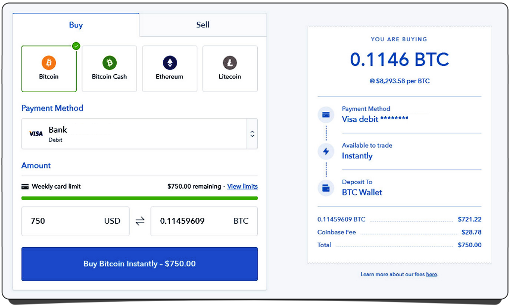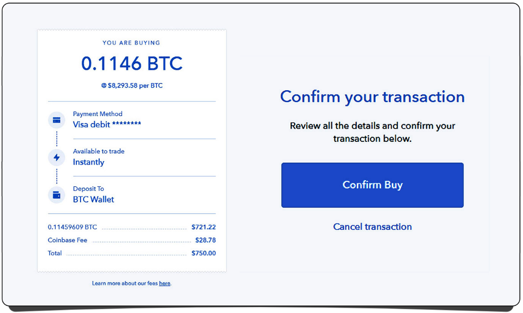 You’ll also see the total that your bank account or debit/credit card will be billed, and how much of that is the Coinbase exchange fee.