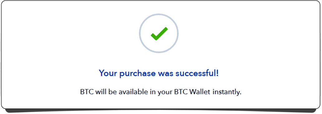 Once your purchase is successful, you’ll get this message, and your coins will be in your wallet, usually immediately.
