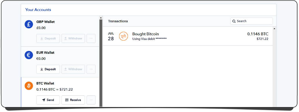 Depending on whether you bought Bitcoin or Ethereum, click the corresponding wallet. As you can see , your coins are now showing.