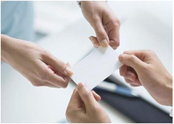 business card," you should pass your business card with both hands toward the receiving side. You should also take the other's business card with both hands.
