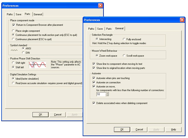 Global options allow users to configure specifics of the Multisim environment. They can be modified by accessing the preferences dialog box. Choose Options/Global Preferences. The Preferences dialog box appears, offering you the following tabs: