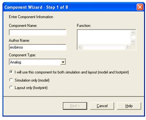 To access the Component Wizard, select Tools/Component Wizard. The component wizard allows designers to enter all pertinent component information, such as symbol, and SPICE model (Figure 7).