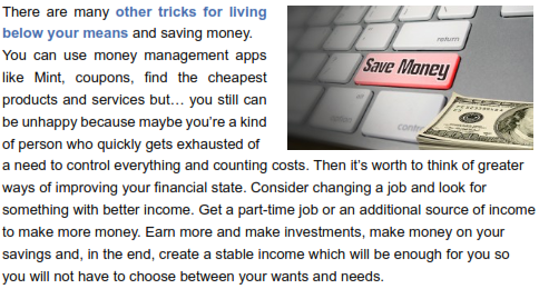 At first, you must understand what doesn’t let you to make ends meet. Pay attention to your basic bills and think how you can reduce them. Needless to say, that saving energy and water is not just the way of saving money, but also the way of being an Eco-friendly person. How much do you pay for the Internet access, cable TV and other services making your life more comfortable? Compare prices with those offered by other providers. Remember, as a consumer you have a right to negotiate those prices and require the most appropriate tariffs for yourself.