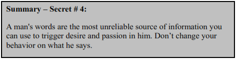 A man's words are the most unreliable source of information you can use to trigger desire and passion in him.
