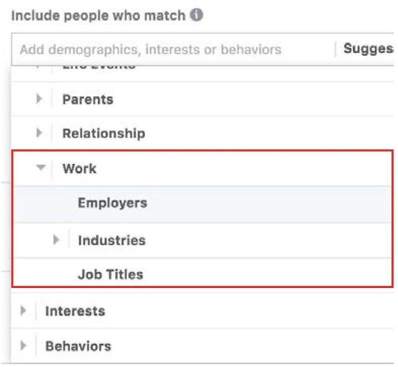 You want to target the workplace. To find that option, click the Browse drop-down menu, click on Work and select one of the workplace targeting options. This example targets Employers.