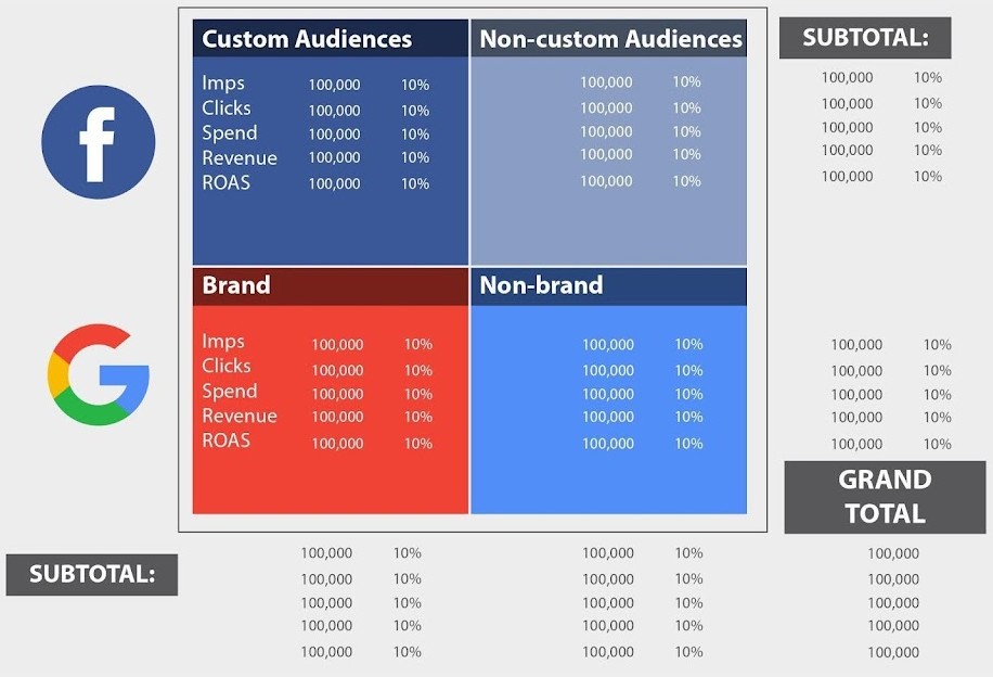 Splitting out our audiences into non-custom and non-brand is a great way of summarizing our top-of the funnel endeavors.