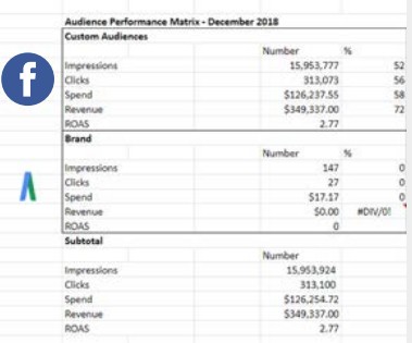 Audience Performance Matrix Helps to Plan Spend and Audiences within our Re-Marketing Funnel.