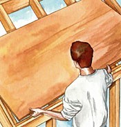 Note: Along the side walls, 8-ft. siding will cover the floor plywood by about 1/2" (this is necessary); if you want the siding to cover the floor framing, use 4 × 9-ft. sheets.