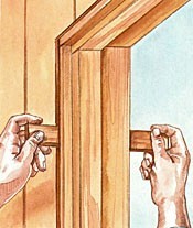 4. Install the glass and outer stops, applying glazing tape to the stops on both sides of the glass. Install the 1 × 4 window trim.