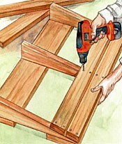5. Cut 2 × 4s for the ramp decking—the number needed depends on the length of the sloping sides of the stringers. Allow for a 1/8" gap between decking boards when calculating the number needed.