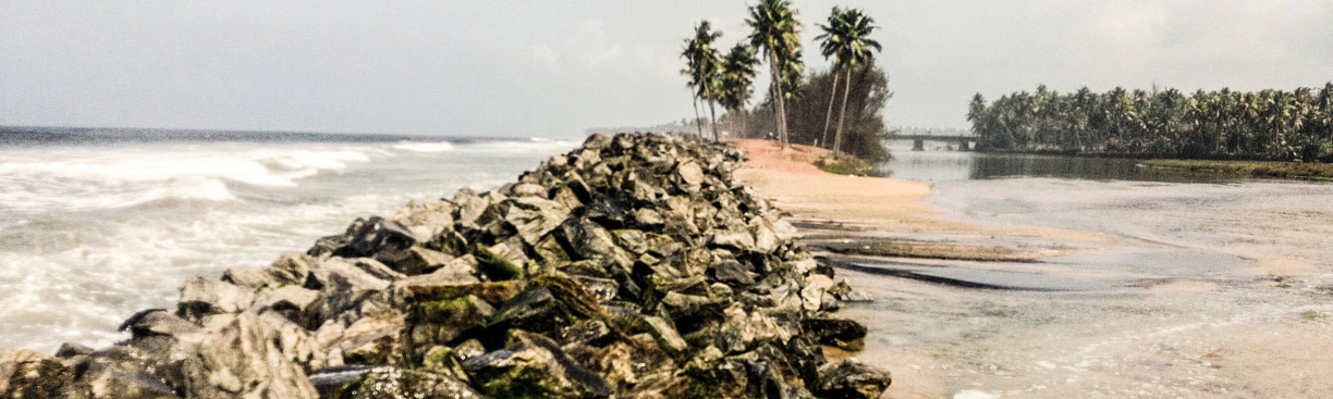 There was also a beautiful backwater lake running parallel to the beach, which had been exploited by the entrepreneurs to build resorts alongside the lake. But the resorts were mostly unoccupied because of the off season. There were also stone embankments alongside the sea periodically halting the walk along the beach, but these halts also gave the opportunity to sit, relax, watch the vast expanse of water, and contemplate, while getting drenched in the waves. Luckily, the clouds on the horizon were also matching their pace with that of mine. Seeing me tired, they also halted and poured a bit before starting their journey again.