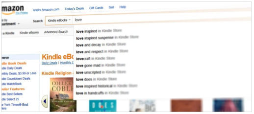 When you begin searching in the Kindle marketplaces search bar you will see that Kindle provides suggested searches.