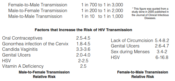So if you are a man and you are not circumcised, have genital ulcers caused by Herpes type 2 and have sex with a HIV +ve woman during her menses, you really have your odds stacked against you. But the ladies really have it rough. Even a common vaginal fungal infection will increase their risk of contracting HIV.