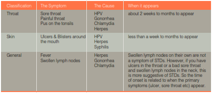 Fever - This is an extremely rare symptom for STDs affecting the throat and mouth. If you have a fever, chances are that it has absolutely nothing to do with your oral sex encounter.