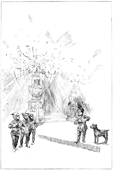 No sooner had I passed the gateway than three curious little beings of about my own height threw themselves swiftly and silently across the pathway. They wore short jackets, knee-breeches, and leggings reaching to their ankles, but no hats or shoes, and their clothes were profusely decorated with beautiful silver buttons.