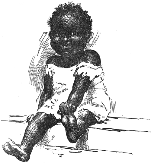 That little ebony image would seem to laugh louder and show his white teeth and the whites of his little eyes like two pearl buttons sot in black beads, and babble his baby talk faster and faster, if she come in his sight.