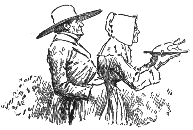 He wuz dretful polite—and I know well what belongs to good manners—and so I didn’t turn my back to him and walk off with my cap-strings a wavin’ back in a indignant, scornful way.