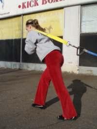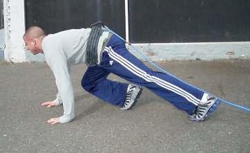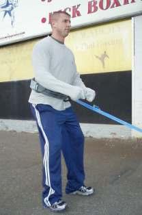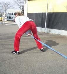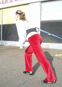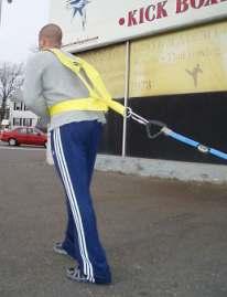 With your lifting belt:• Attach the rope or strap to your lifting belt (or harness) and walk forward dragging the sled behind you