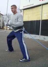 • Attach the rope or strap to your lifting belt and walk sideways dragging the sled sideways (each way)
