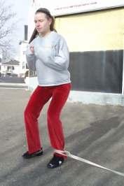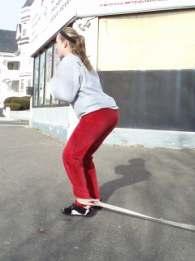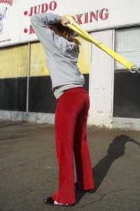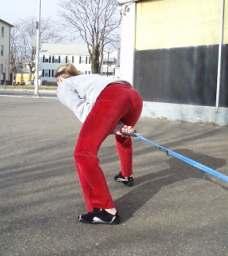 • Putting the ends of the split rope around your ankles and walking backward