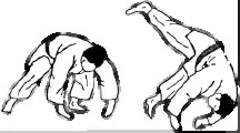 From standing step forward with right foot, reach forward with right hand, turn arm so that elbow is up, lean down and place palm as far back to rear foot as possible, Pushing with right foot, roll over right shoulder, as left side touches, strike floor with full