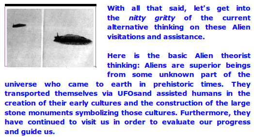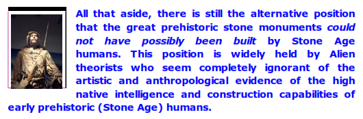 most Alien theorists are basically well-meaning theorists who have fabricated a rather sloppy position which holds that humans living in preliterate and early literate cultures lacked the intelligence, organization and problem-solving ability necessary to design and construct large stone structures.