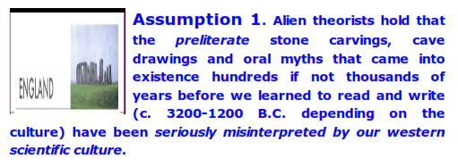However, since there were no written records in preliterate cultures, such as Stone Age Britain, alternative thinkers are free to make it up in any way they please for edifices such as Stonehenge.