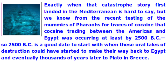 So that leaves us with one final question: is it possible that Plato's catastrophic tale (no matter how stitched up it became with bits and pieces of catastrophe lore) is actually based on a huge meteoric catastrophe that occurred in 9500 B.C. and that some of the stitched-in bits describing the destruction of an actual island empire are bits of that catastrophic lore?