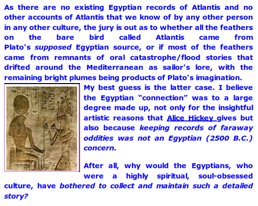 As for the rest of it, the bits and pieces, suffice it to say that Plato made up some of it them (like any good story teller) and the rest were delivered to him by some equally good maritime storytellers.