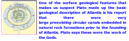Plato implies that this gift from the Gods of three very large stone canals encouraged the residents to rather easily dig (out of dirt) a secondary canal scheme that would lead to the ocean and other locations in Atlantis. There is nothing that can turn a suspicious reader completely around as to the accuracy and truth of a "tall tale" than a generous and expert sprinkling of known, accepted lore throughout the tale, and I believe this stone canal gambit is an excellent example of Plato's skill with such devices.