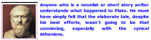 So we know what Plato was up to. He was constructing a story to illustrate a point: Athens couldn’t continue behaving in such an immoral way.