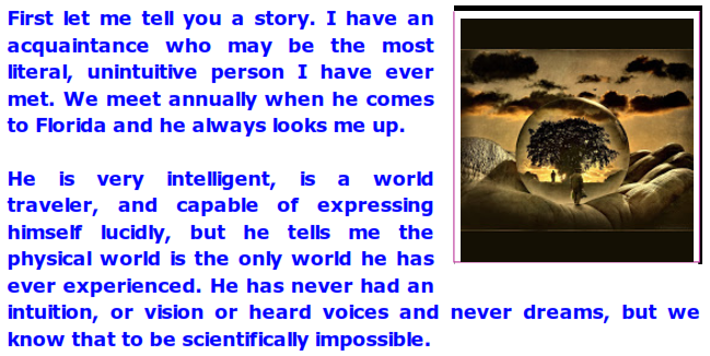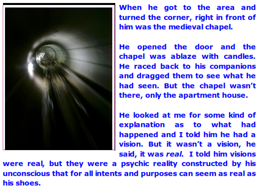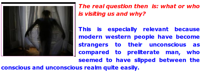 I have no doubt that a spellbinding reality can be fabricated by the unconscious and projected into consciousness. It can create a reality so real as to completely fool us (except for the clues, but those clues often can't be detected during the visitation because the person being psychically visited is a passive, accepting observer, much as a dreamer is.) It is only when the visitation is recalled afterwards that some of the clues can be detected.