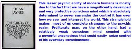 Theirs was a spirituality that was either initiated entirely by the unconscious (visions, voices) or was the result of consciously initiated practices that allowed them to leave their ordinary consciousness and enter the realm of the unconscious mind. (Today, we call such practices lucid dreaming, astral voyages, remote viewing, telepathy, etc.). No one knows what those consciously-initiated practices were in preliterate cultures, or their extent and sophistication, but I believe they must have been far greater than the remnants used today by those among us having psychic abilities.