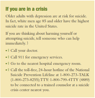 Genes—people with a family history of depression may be more likely to develop it than those whose families do not have the illness. Older adults who had depression when they were younger are more at risk for developing depression in late life than those who did not have the illness earlier in life.
