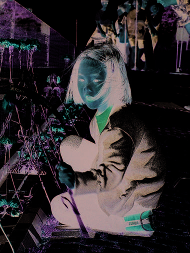 Six-year-old Mary Zheng straightens a flower placed at the Vietnam Veterans