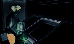 A mother and daughter viewing documents in the Exhibition Hall