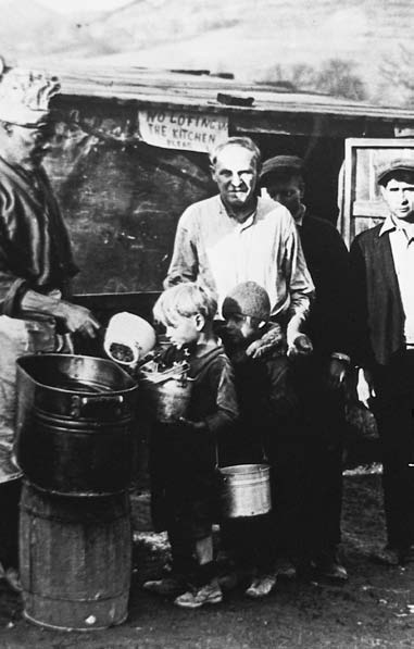 Depression era soup line,