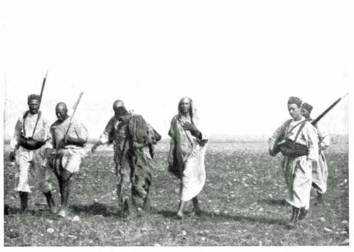 The Arab losses under the fire of the French 75-millimètre guns and the fusillade of the Foreign Legion and the Algerians, many of them sharpshooters, are usually heavy where the Arabs attempt a serious resistance. I should say it would average a loss on the part of the Moors of fifty dead to one French soldier wounded. Moreover, when a Moor is badly wounded he dies, for the Moors know nothing of medicine, and the only remedies of which they will avail themselves are bits of paper with prayers upon them, written by shereefs; these they swallow or tie about a wound while praying at the shrine of some departed saint. It has seemed to me a wanton slaughter of these ignorant creatures, but if the French did not mow them down, the fools would say they could not, and would thank some saint for their salvation.