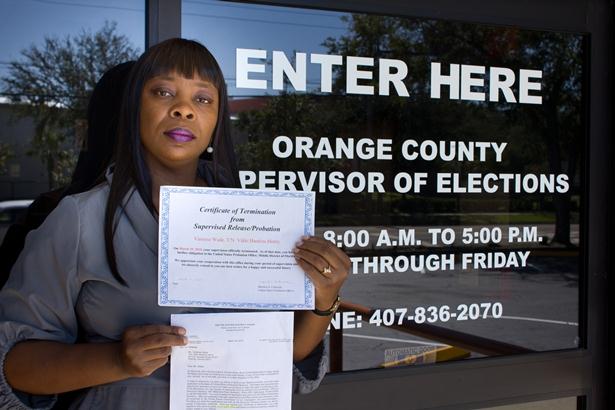"But in March, after only 30 minutes of public debate, Gov. Rick Scott overturned his predecessor's decision, instantly disenfranchising 97,491 ex-felons and prohibiting another 1.1