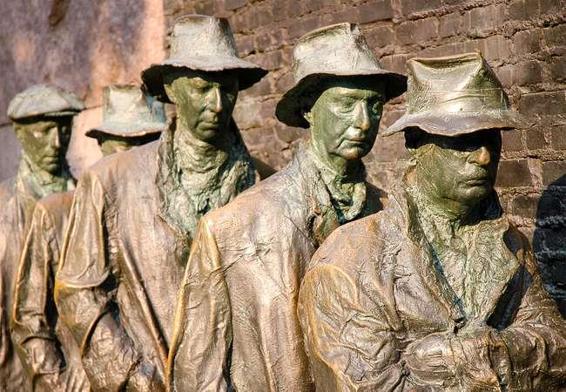 After the First World War, the economy boomed, but then overheated as consumers and companies over-borrowed and money became tight. A European collapse heaped further pain as consumers reined in their spending, hitting production and jobs. Unemployment soared, farming collapsed, banks collapsed and the stockmarket collapsed. The Great Depression had arrived and people formed bread lines for food, until the ‘New Deal’ brought an injection of government monies to rebuild the infrastructure and the economy.